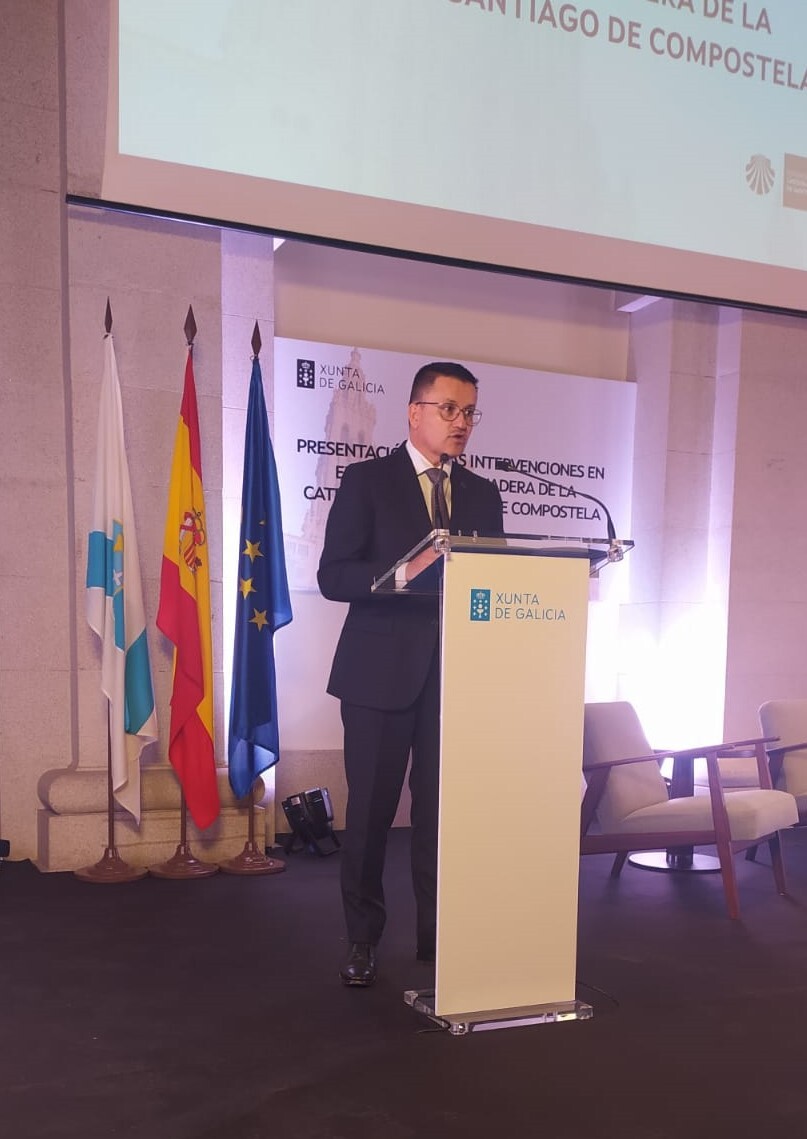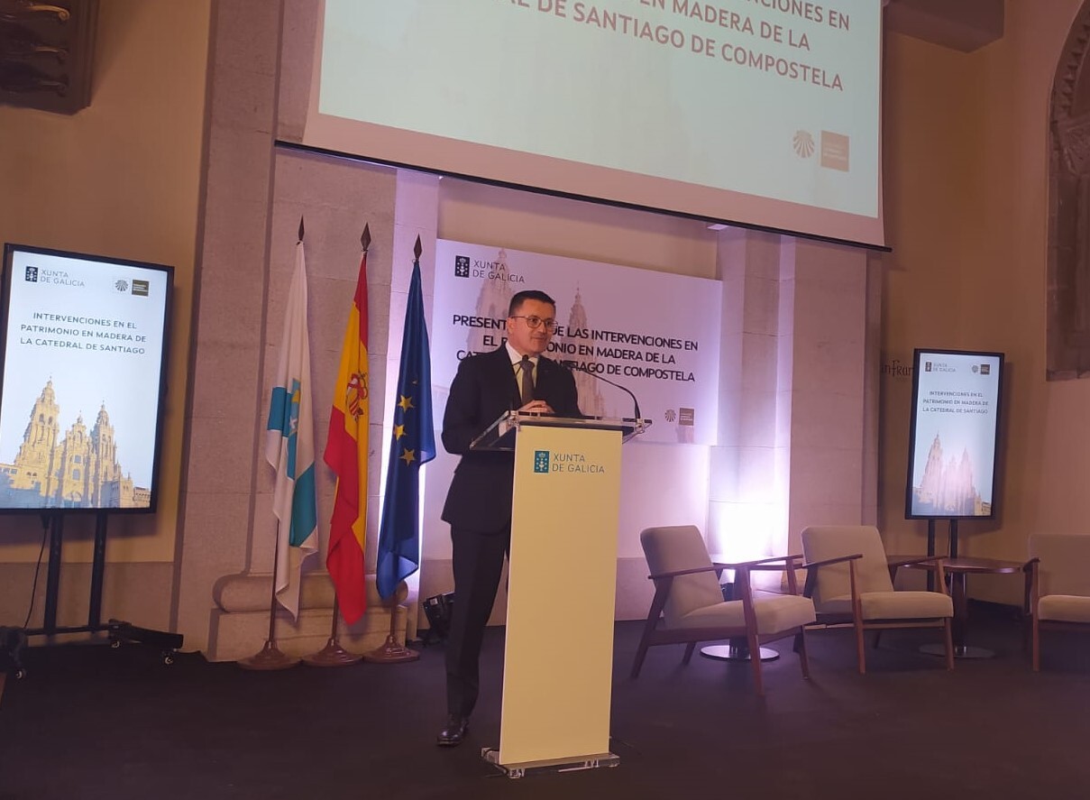 O conselleiro do Medio Rural, José González, puxo hoxe en valor a colaboración entre a Xunta e a Fundación da Catedral de Santiago en materia de investigación e innovación para reparar todo aquel patrimonio estrutural en madeira existente no templo que así o precise.